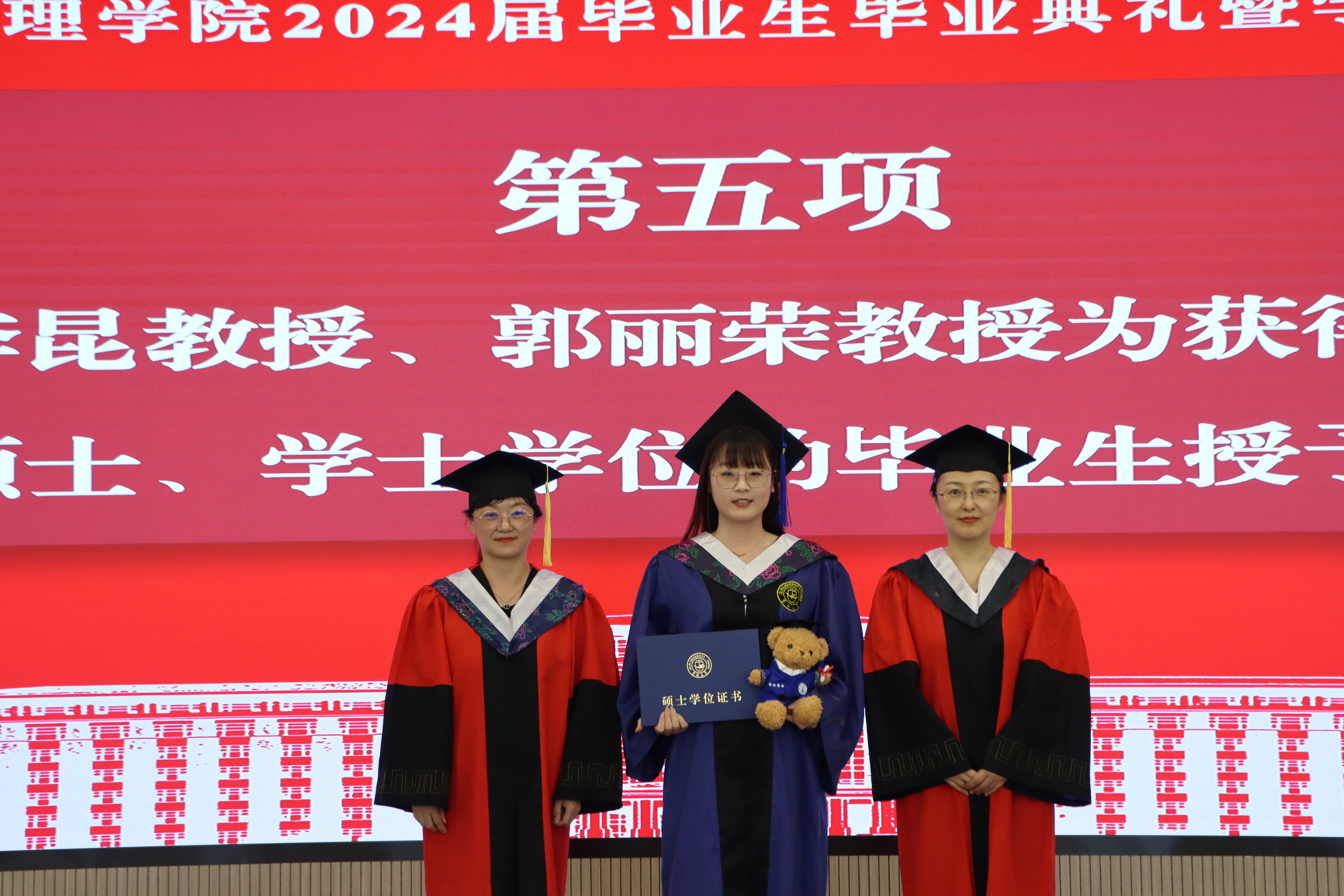 副院长、学位评定分委员主席李昆老师,学术委员会主任郭丽荣老师为获得博士学位、硕士学位、学士学位的毕业生拨动流苏、授予学位并颁发学位证书。