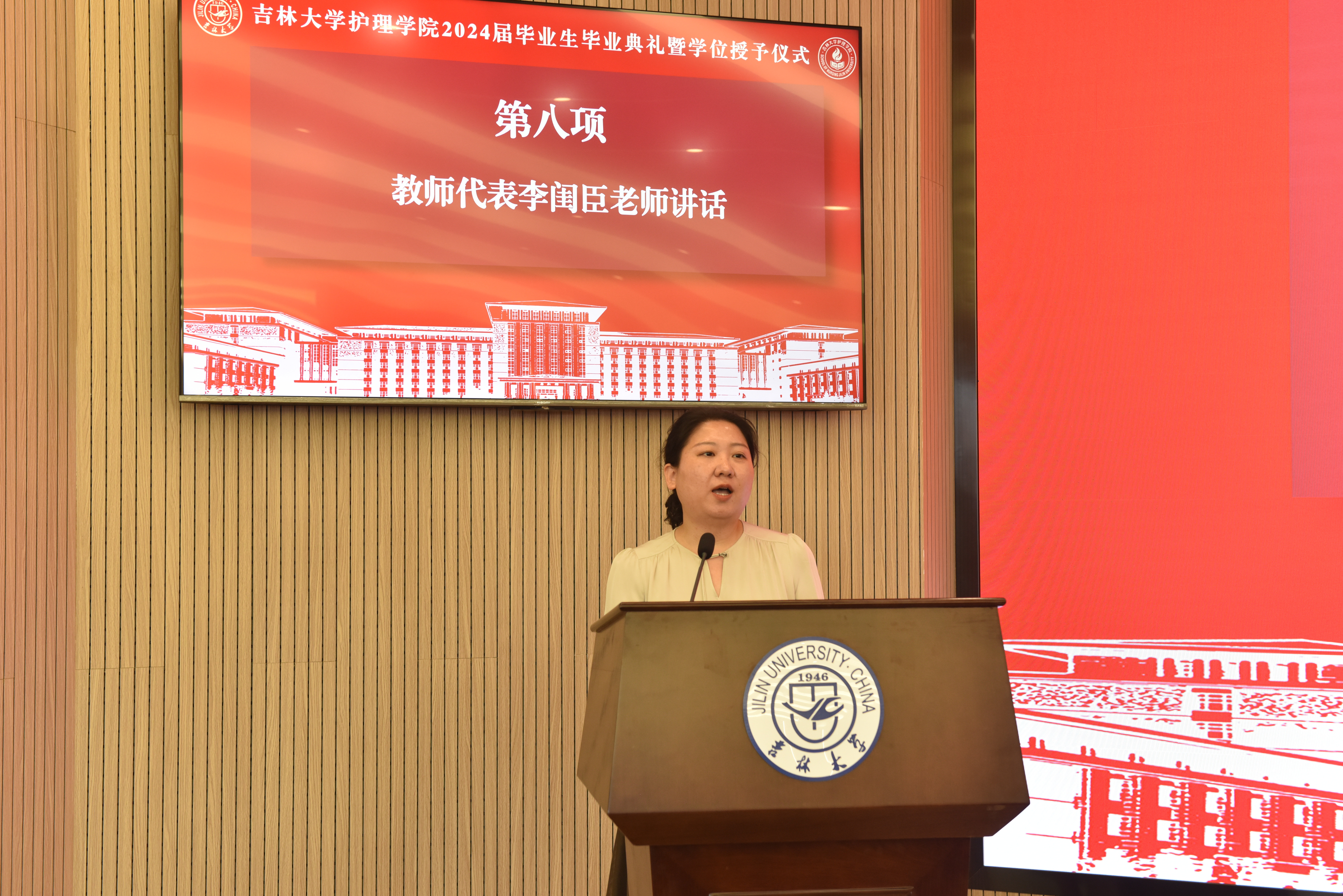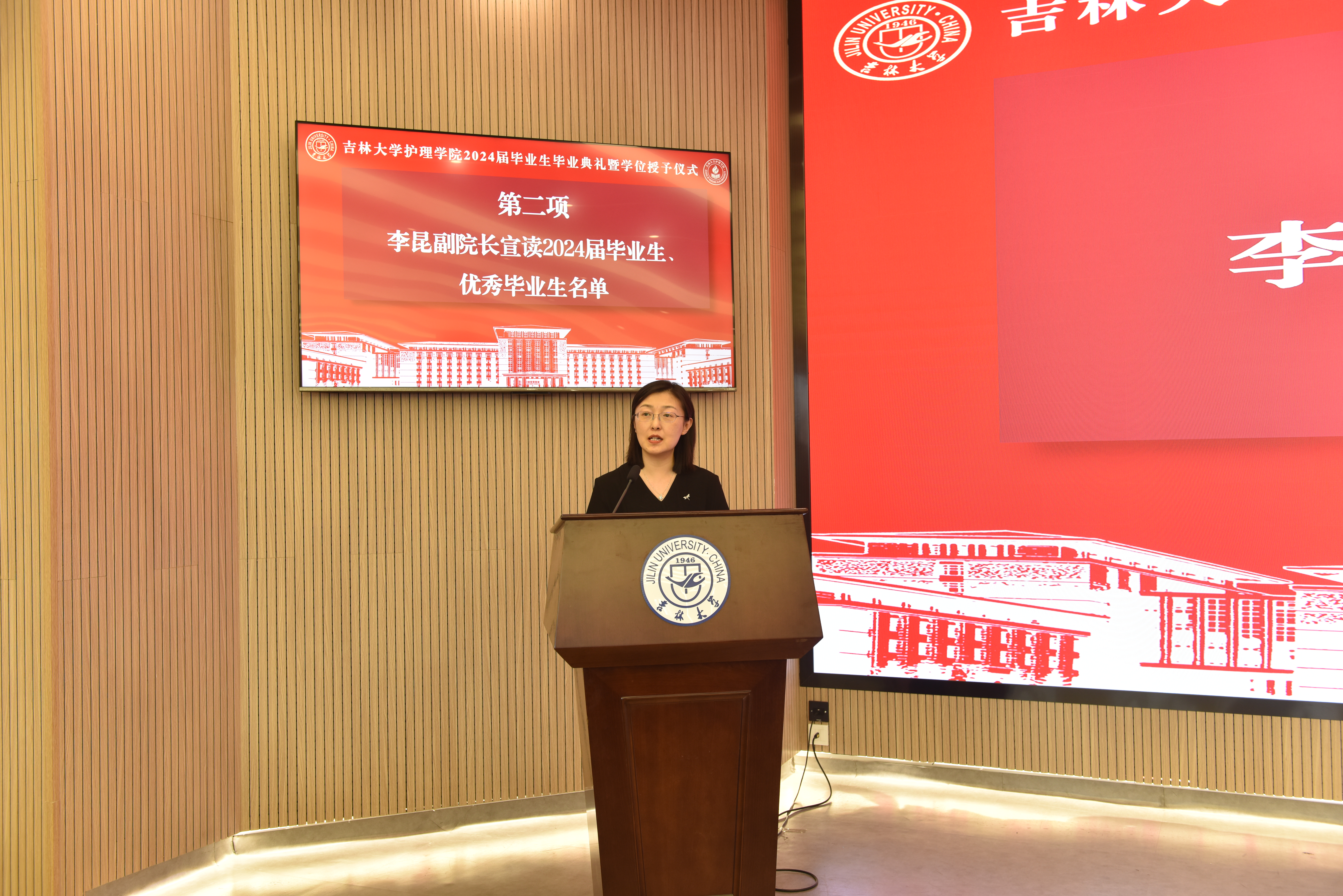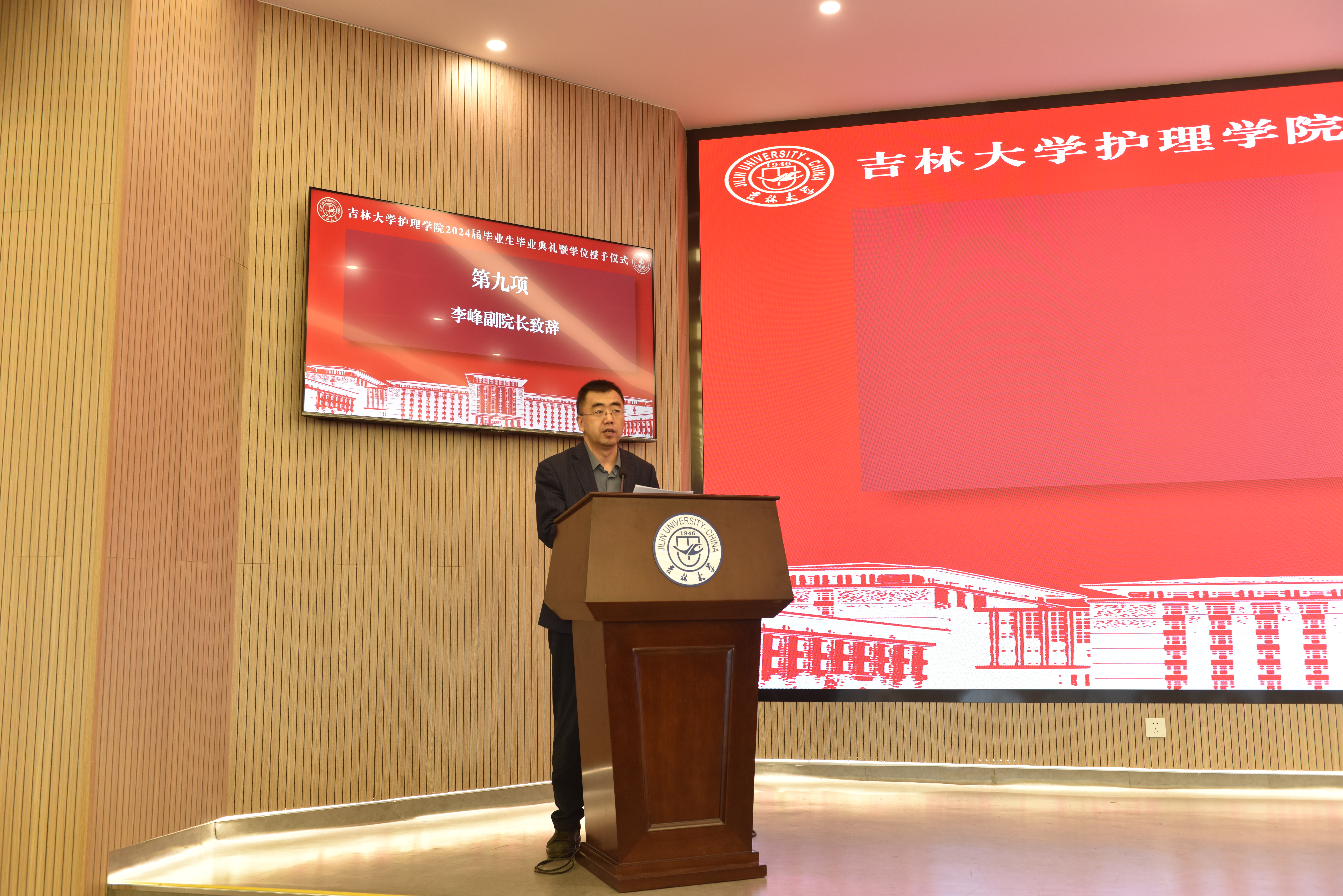 在新民校区第一教学楼401白求恩大讲堂隆重举行2024届学生毕业典礼暨学位授予仪式。学院全体领导班子,学院学位委员会、学术委员会、教学委员会主任,各教研室、科室主任,研究生导师、毕业年级班主任等部分教师代表,以及2024届全体本科生和研究生参加典礼。典礼由学院党委副书记兼副院长葛宗梅主持。