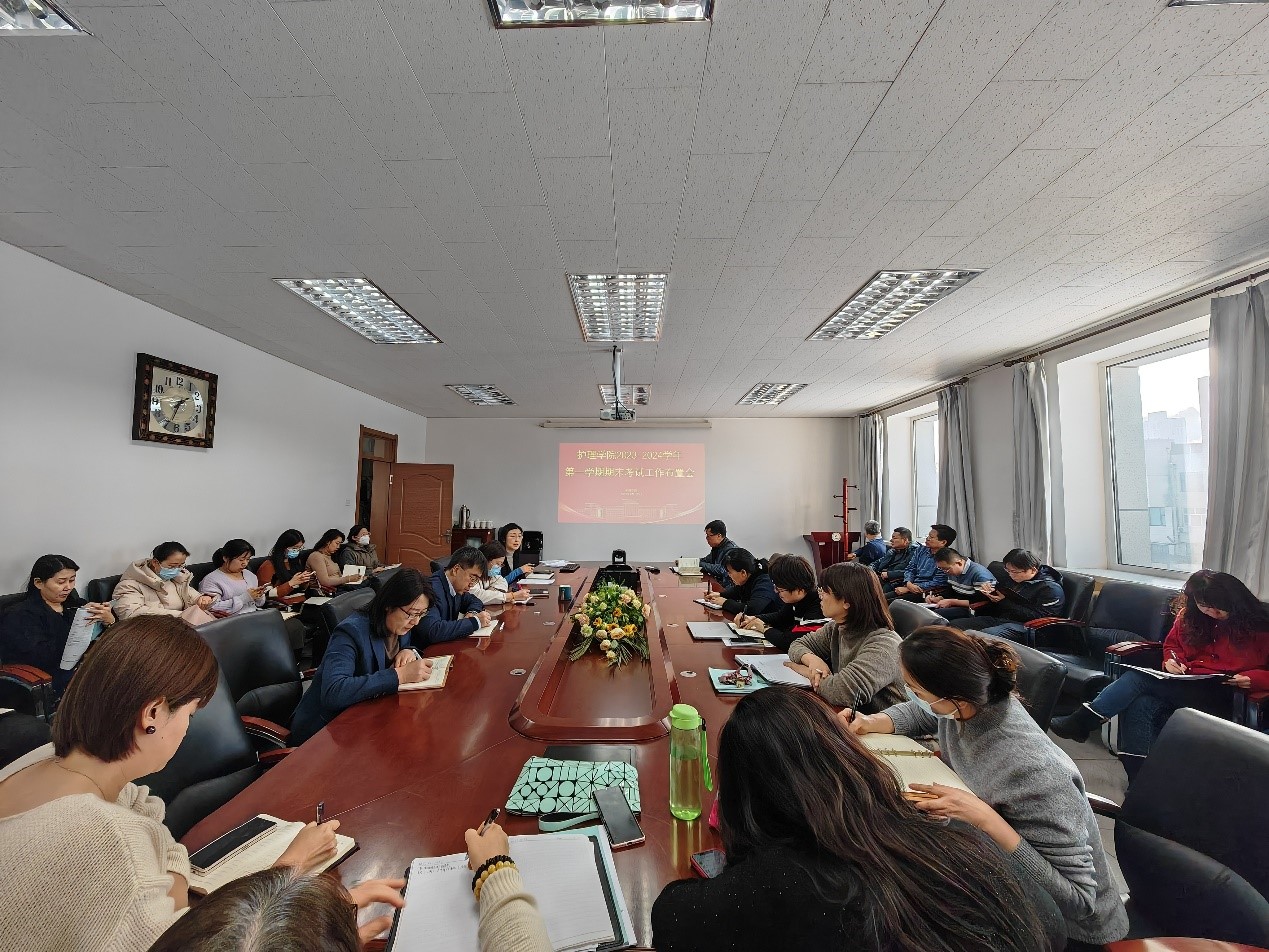于2023年12月20日下午组织召开了期末考试工作布置会。李峰副院长,党委书记韩月波,李昆副院长,党委副书记葛宗梅,教学委员会主任袁华,各教研室主任,本学期各门课程负责人及教学秘书参加会议。会议由副院长李昆主持。