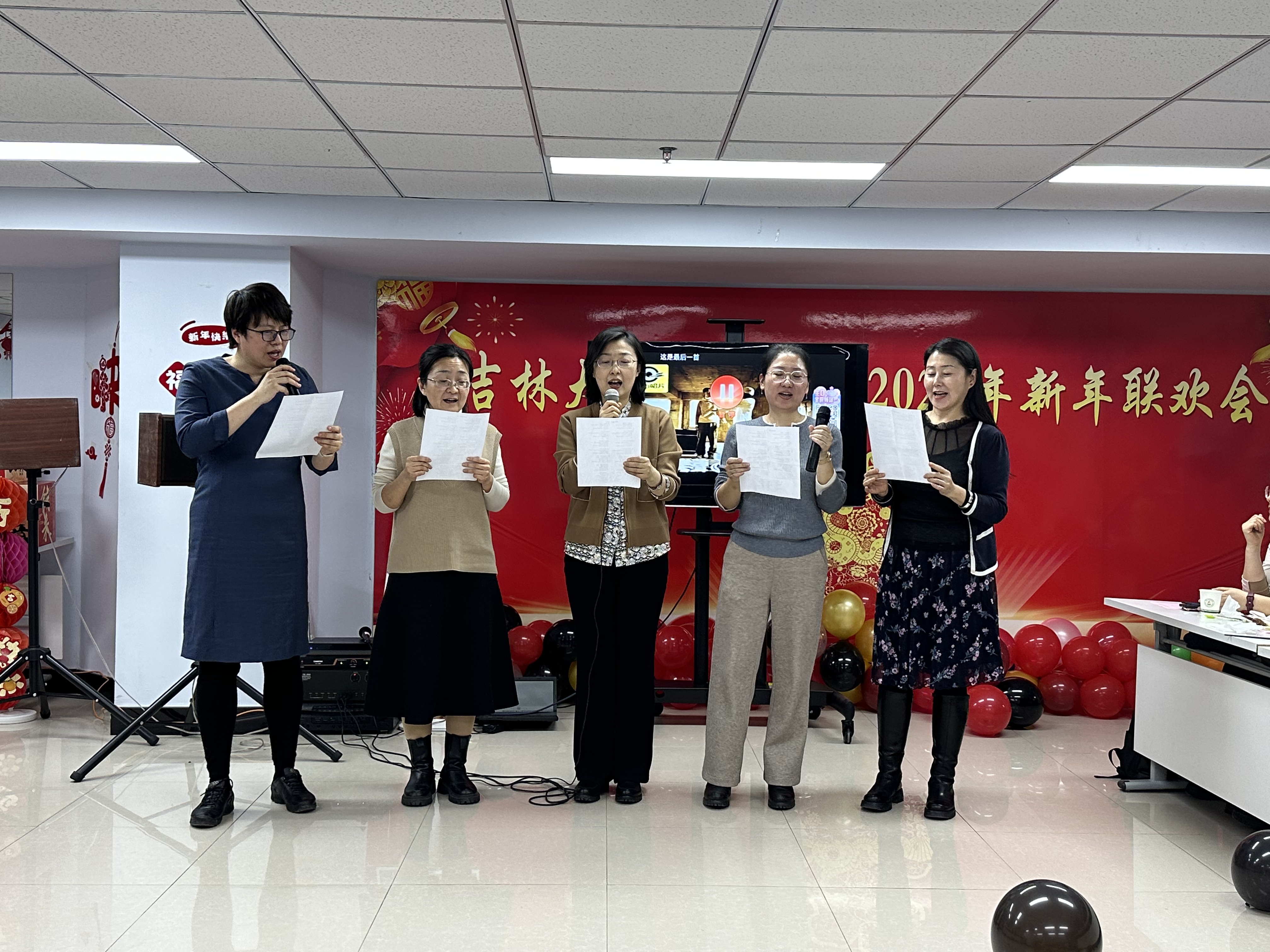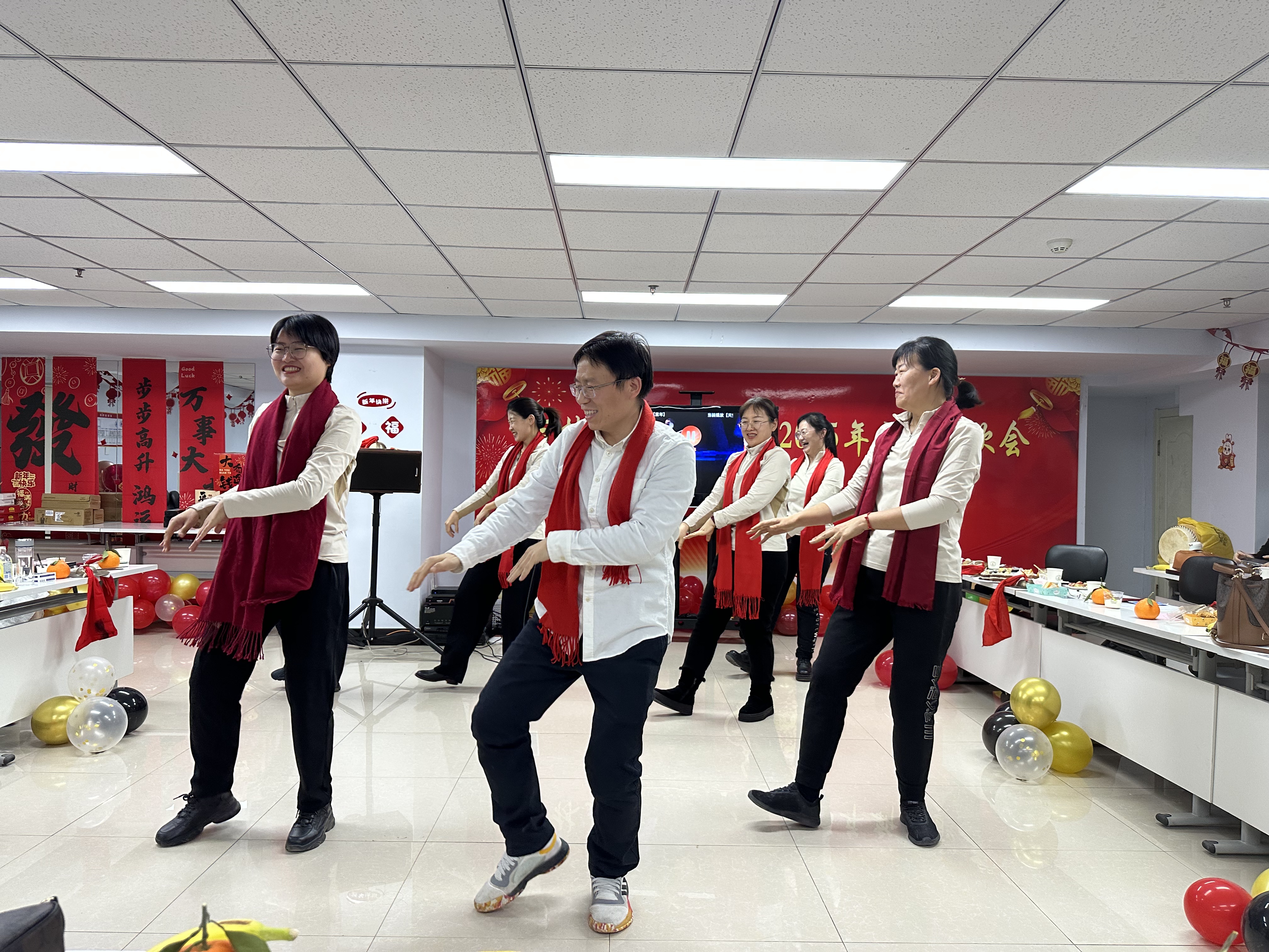 在热烈的氛围中,新年联欢会正式拉开帷幕。开场舞《上春山》以灵动的身姿、轻盈的步伐,瞬间抓住全场目光;党办院办教学科研办等联合出演的小品《我要上班》凭借精湛演技、幽默台词,引发台下阵阵欢笑;外科护理教研室诗朗诵《新年,你好!》用饱满情感抒发新年期盼与祝愿;朱晓玉老师的独唱《Five Hundred Miles》凭醇厚嗓音诠释乡愁与向往;康复治疗学教研室的《春天序曲》将融入工作总结的“三句半”与舞蹈串烧巧妙结合,创意赢来掌声不断;人文护理等科室的歌曲串烧《童年》《明天会更好》将纯真回忆与美好期许完美融合;对唱《你是我心内的一首歌》借默契配合为联欢会添浪漫色彩;实验中心的小合唱《如愿》以优美旋律唱出对生活向往与感恩;基础护理教研室等小合唱《相亲相爱一家人》用深情彰显学院团结情谊;教师党支部的小合唱《红歌联唱》以磅礴气势、豪迈歌声重温红色经典,坚定爱国情怀。节目中间设置的游戏环节与抽奖环节将气氛推向了高潮,联欢会在欢声笑语中圆满结束。