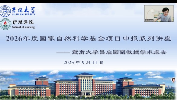 博士生导师吕启圆副教授、担任主讲嘉宾。学院副院长彭歆教授及院领导班子成员、全体教师和在读博士生参会,讲座由院长助理、人文护理教研室主任贾勇副教授主持。