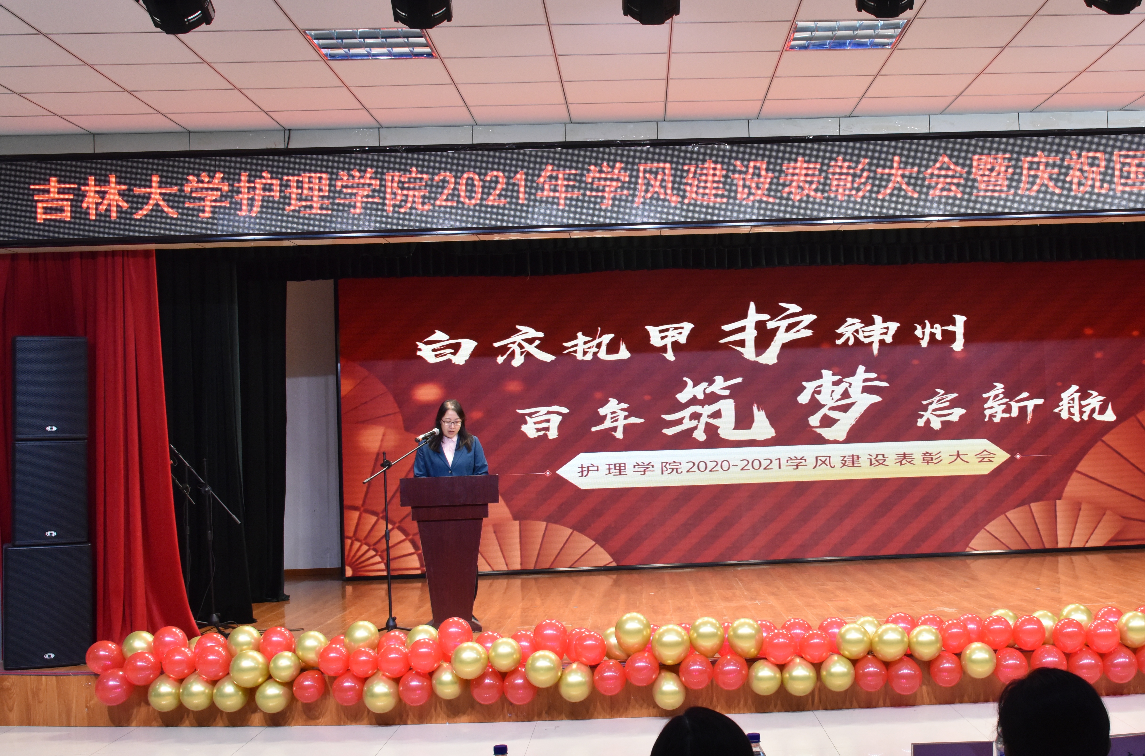 中心校区田家炳A座礼堂举办了以“白衣执甲护神州,百年筑梦启新航”为主题的学风建设表彰大会。 taiav