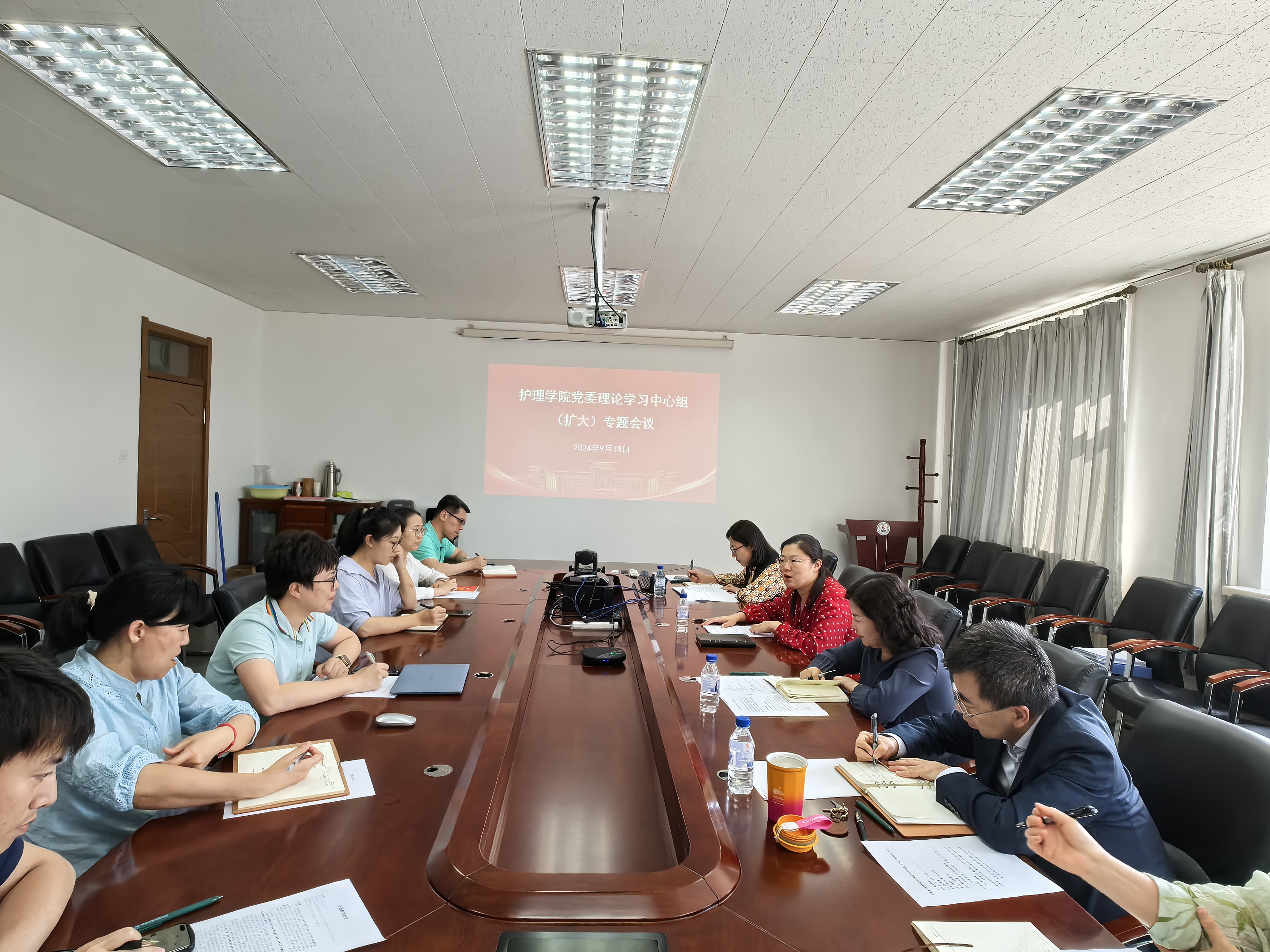 党委召开理论学习中心组(扩大)专题会议,全面总结学院党纪学习教育工作。会议由院党委书记韩月波主持,学校党建工作联络员徐丽梅列席,学院领导班子、院长助理、党委委员、纪委委员、各党支部书记参加会议。