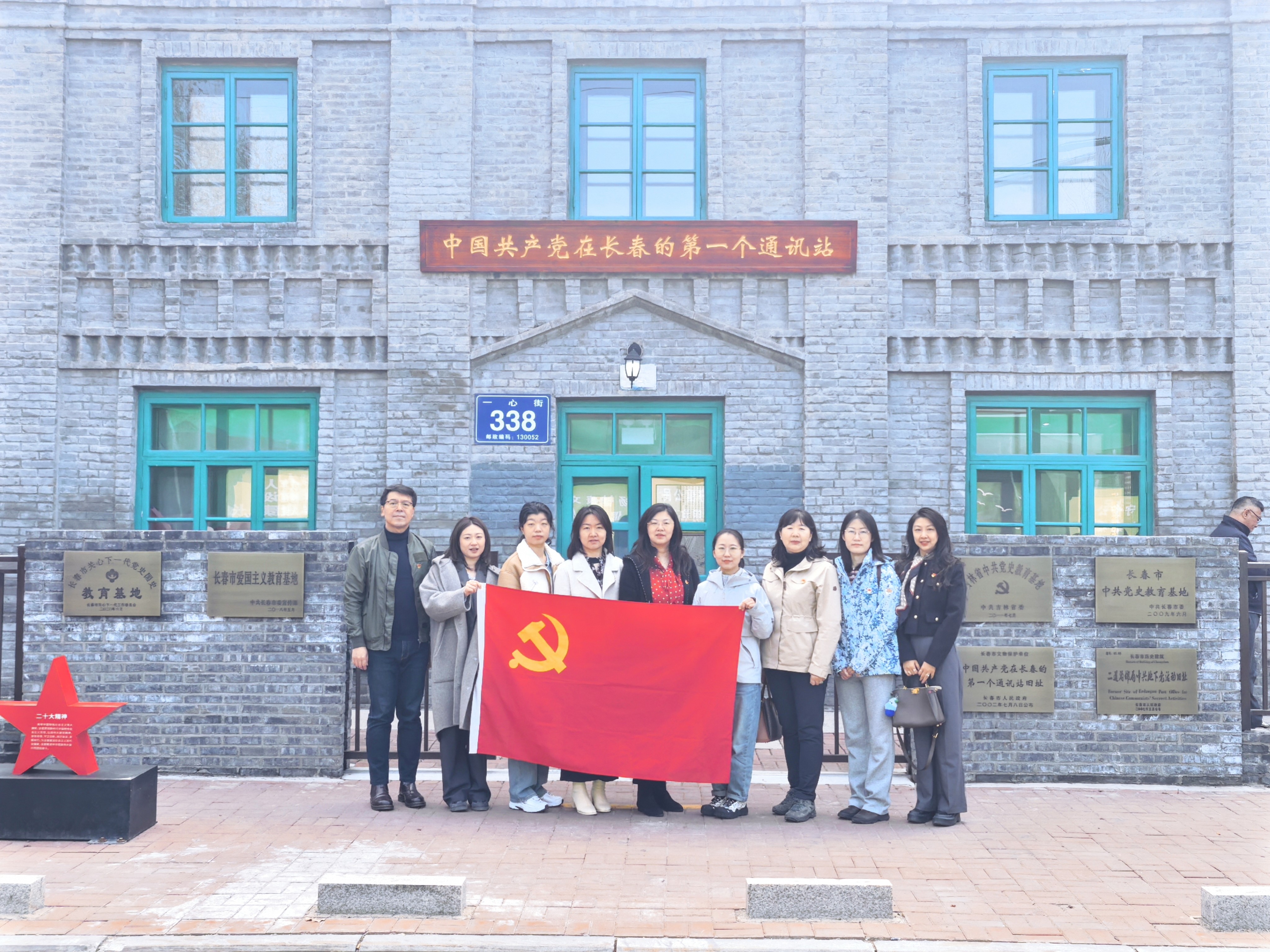 部分师生党员在学院党委书记韩月波、学院副书记兼副院长密佳音的带领下,前往中国共产党在长春的第一个通讯站开展参观研学活动。