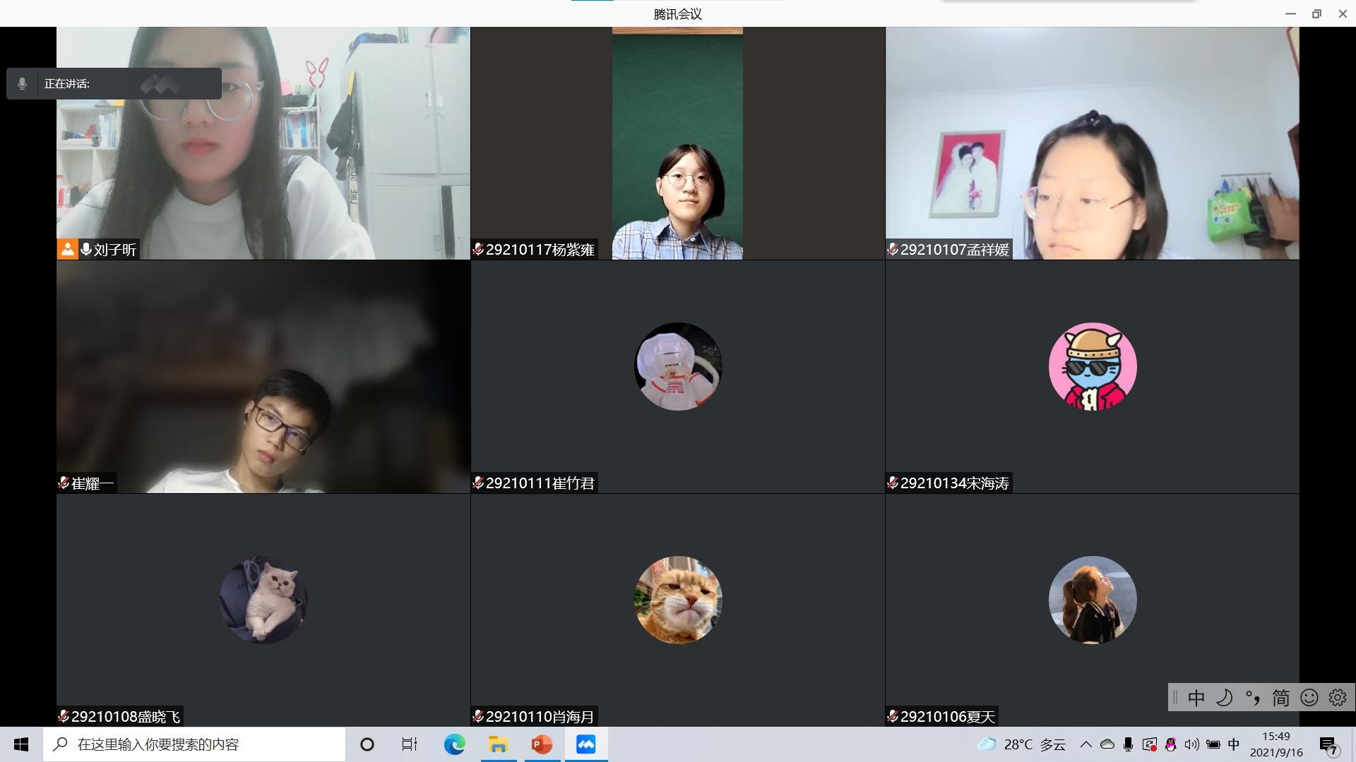 2021级以班级为单位于9月14日、9月15日开展线上破冰班会。尽管大家来自天南海北,但同学们仍积极踊跃发言,这一时的距离阻挡不了他们内心的火热以及讨论的热情。同学们在交流中绽放自我,认识彼此,更加增强了班级凝聚力。