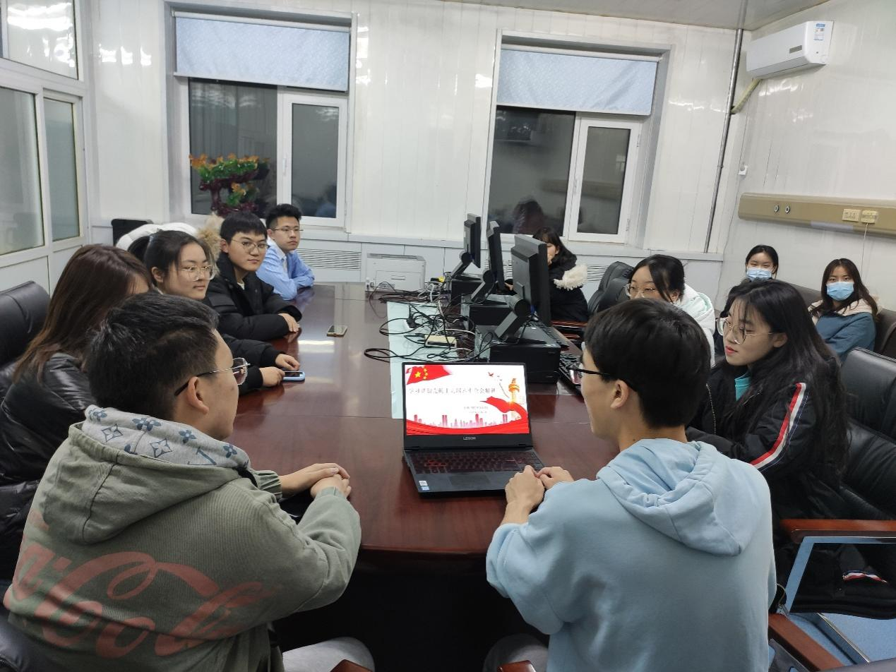 团学组织于2021年11月21日晚在学院四楼会议室召开了学习党的十九届六中全会精神会议,学院团学组织全体学生干部参加了学习会。