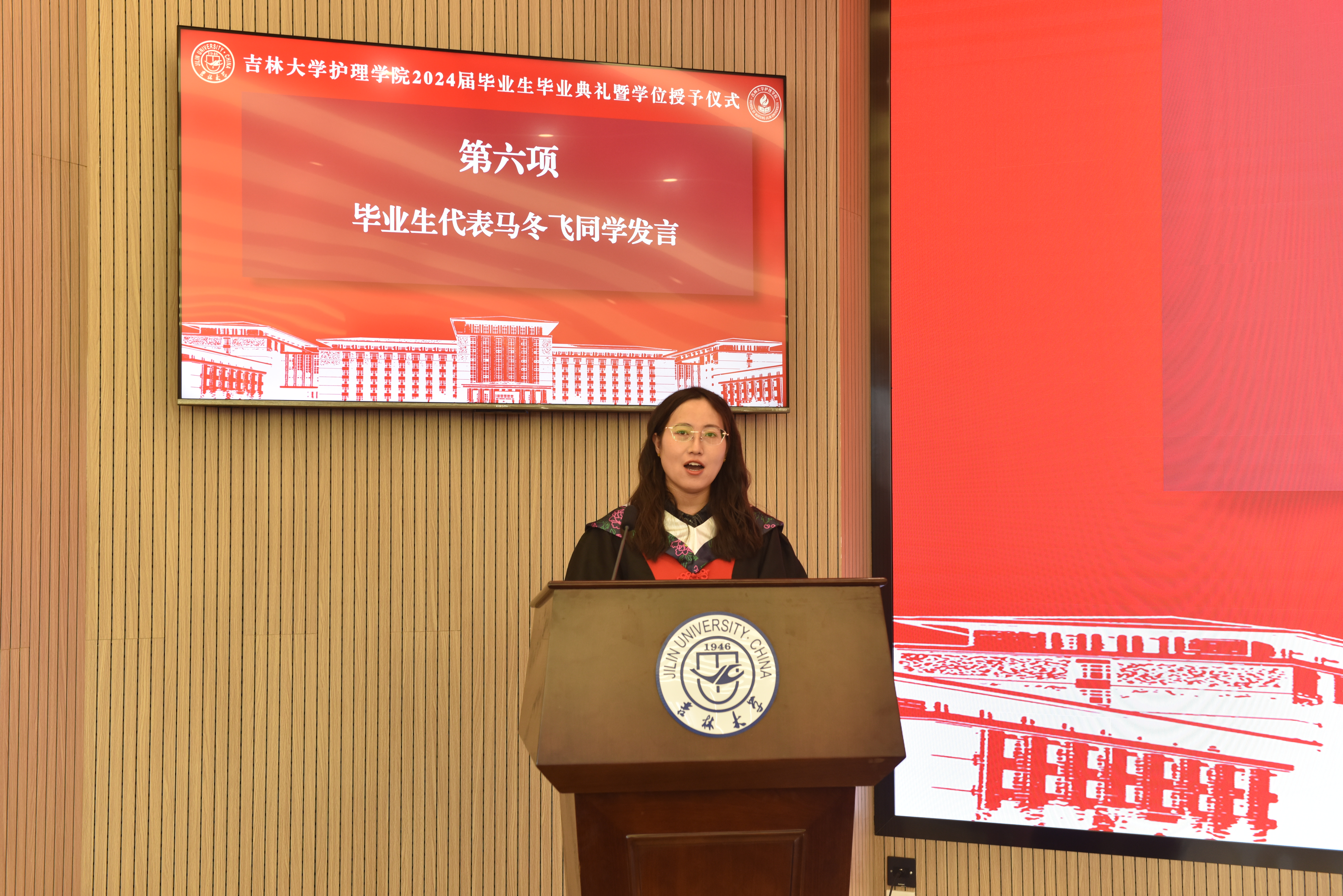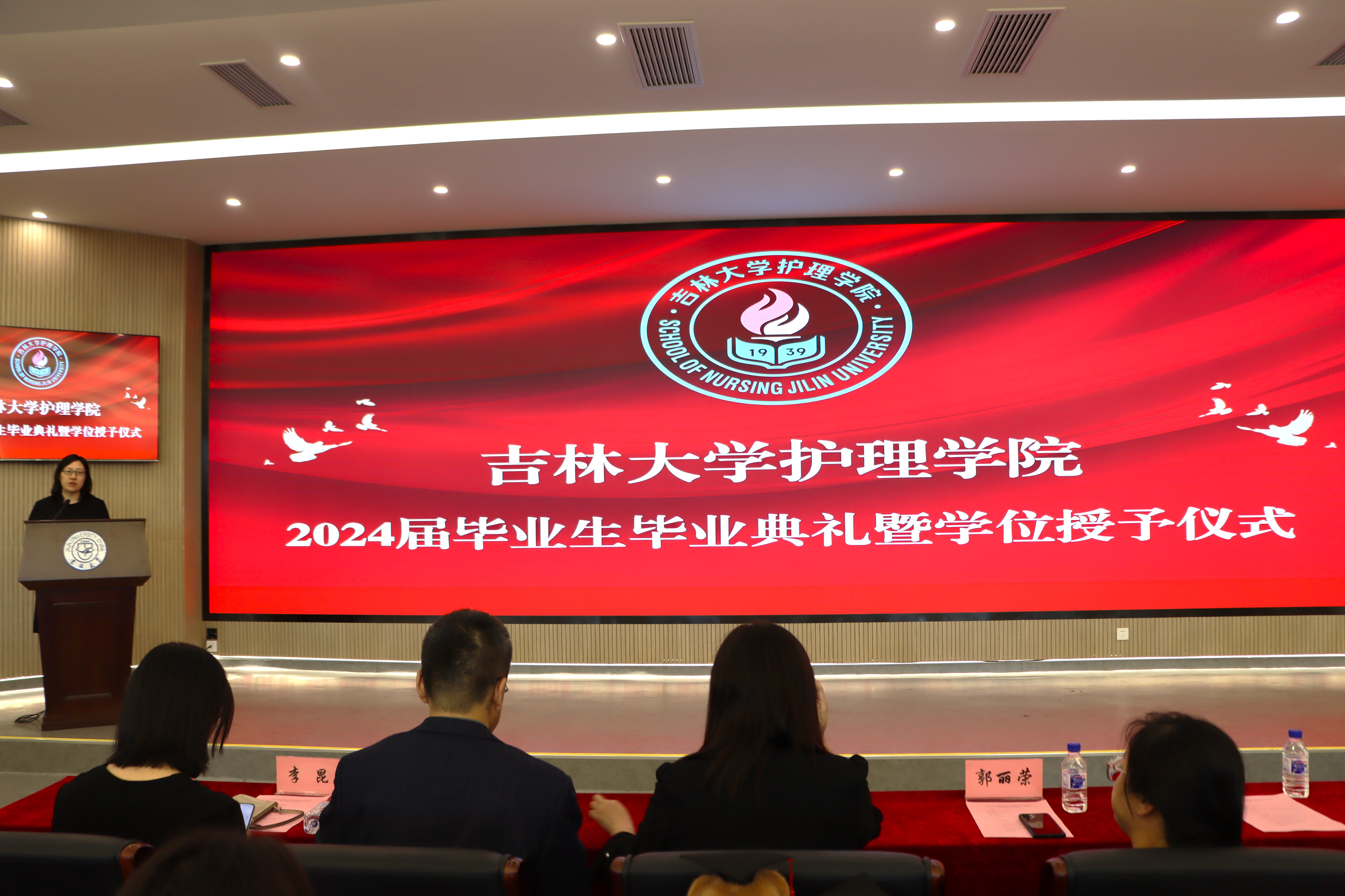 在新民校区第一教学楼401白求恩大讲堂隆重举行2024届学生毕业典礼暨学位授予仪式。学院全体领导班子,学院学位委员会、学术委员会、教学委员会主任,各教研室、科室主任,研究生导师、毕业年级班主任等部分教师代表,以及2024届全体本科生和研究生参加典礼。典礼由学院党委副书记兼副院长葛宗梅主持。