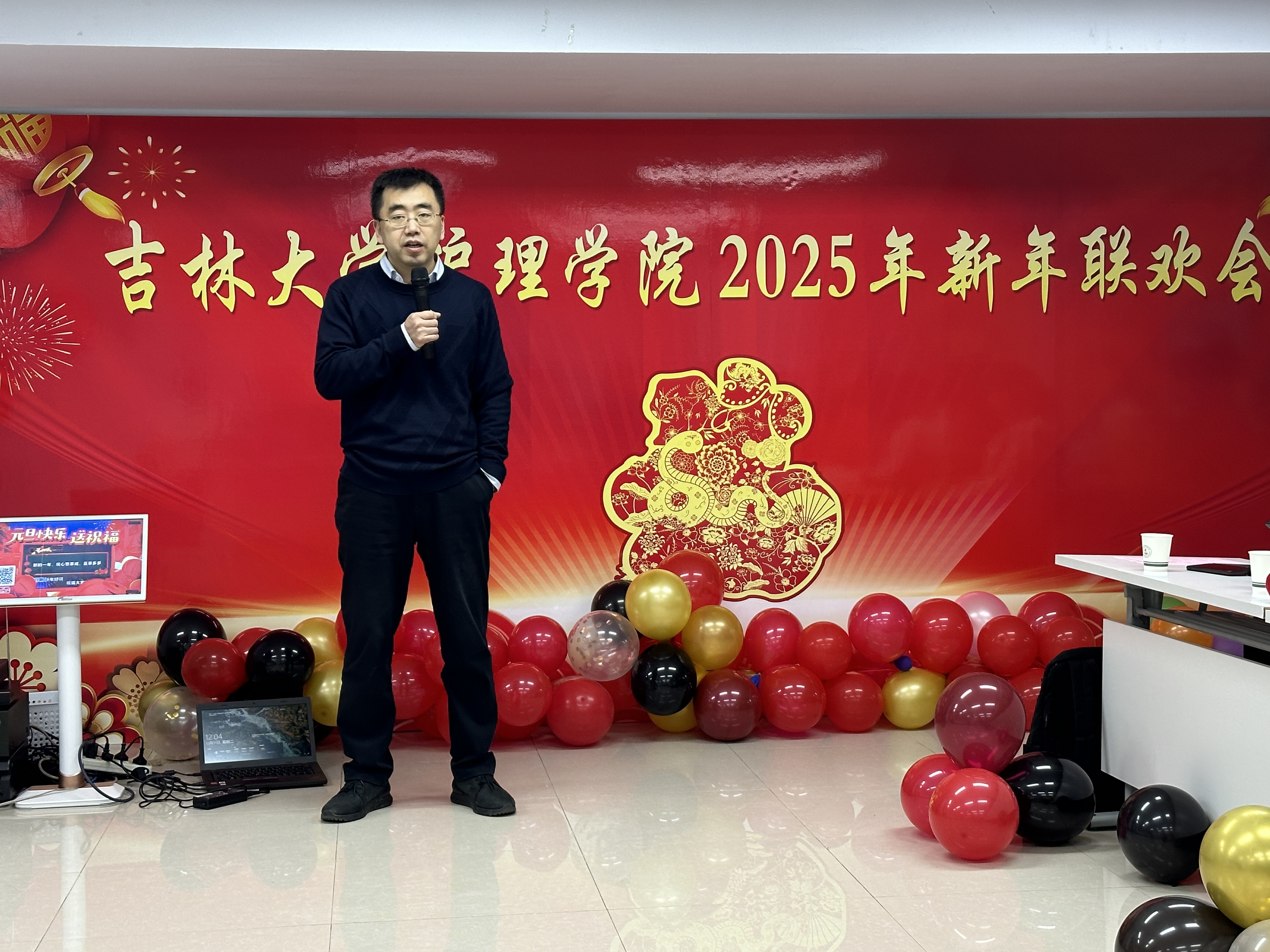 活动伊始,李峰副院长致辞。李峰系统且全面地回顾了2024年学院在学科建设、人才培养、科学研究、学术交流、国内外合作等方面取得的佳绩,并对2025年表达了殷切的期望,激励全体教师在新的征程中奋勇拼搏、砥砺奋进。