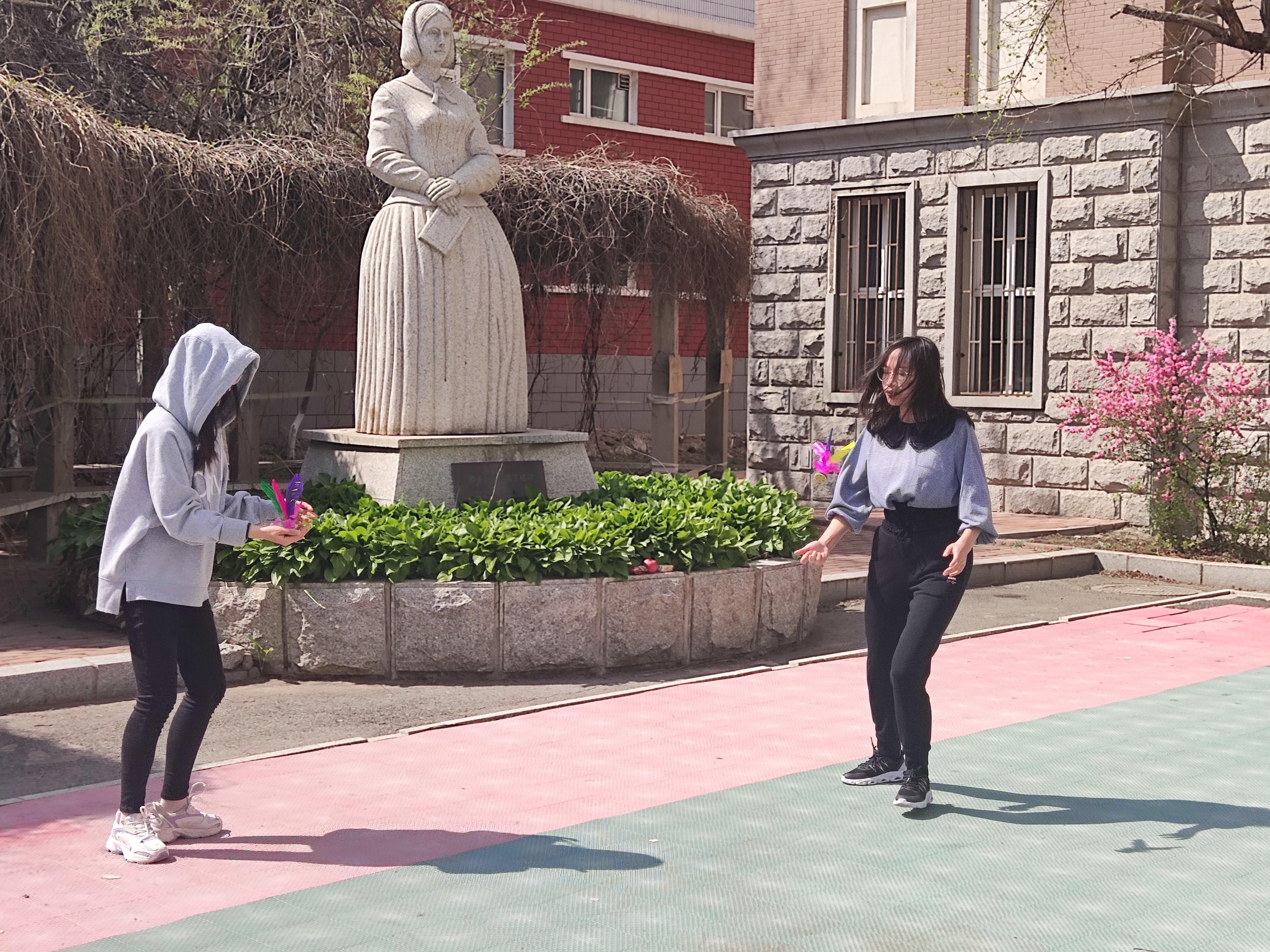 排球场举办了以“我运动,我健康”为主题的踢键子比赛。本次活动受到在校师生的广泛关注。