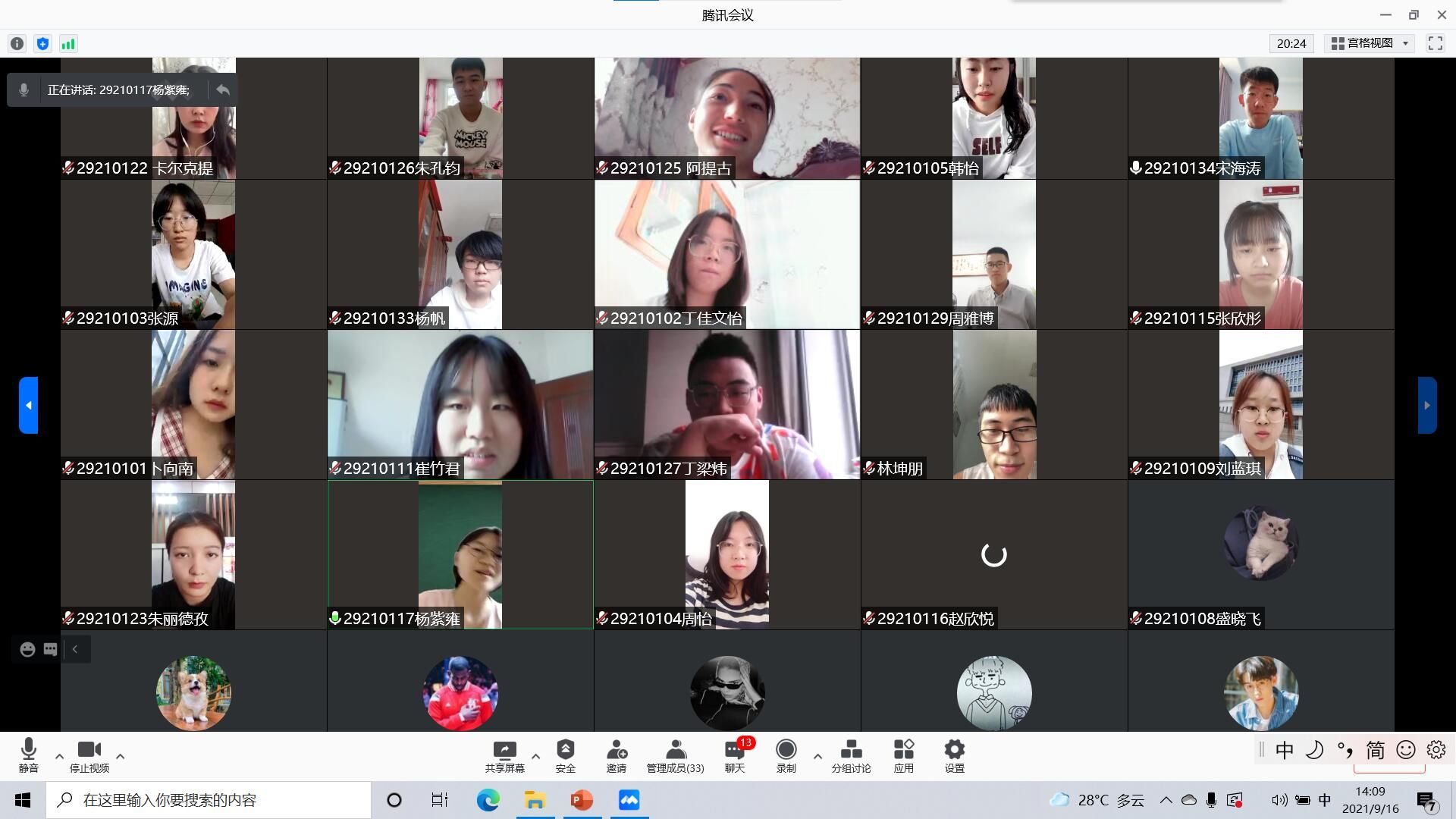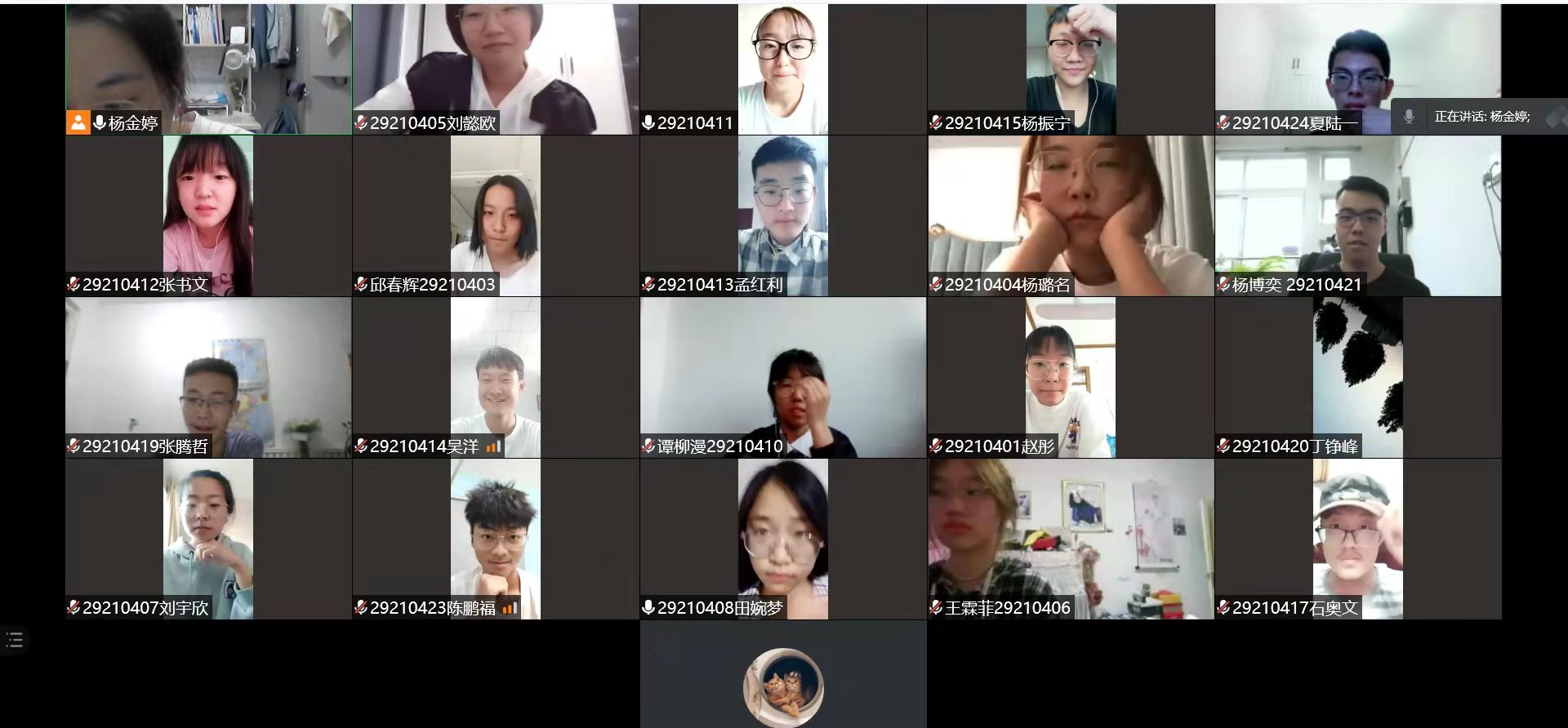 2021级以班级为单位于9月14日、9月15日开展线上破冰班会。尽管大家来自天南海北,但同学们仍积极踊跃发言,这一时的距离阻挡不了他们内心的火热以及讨论的热情。同学们在交流中绽放自我,认识彼此,更加增强了班级凝聚力。