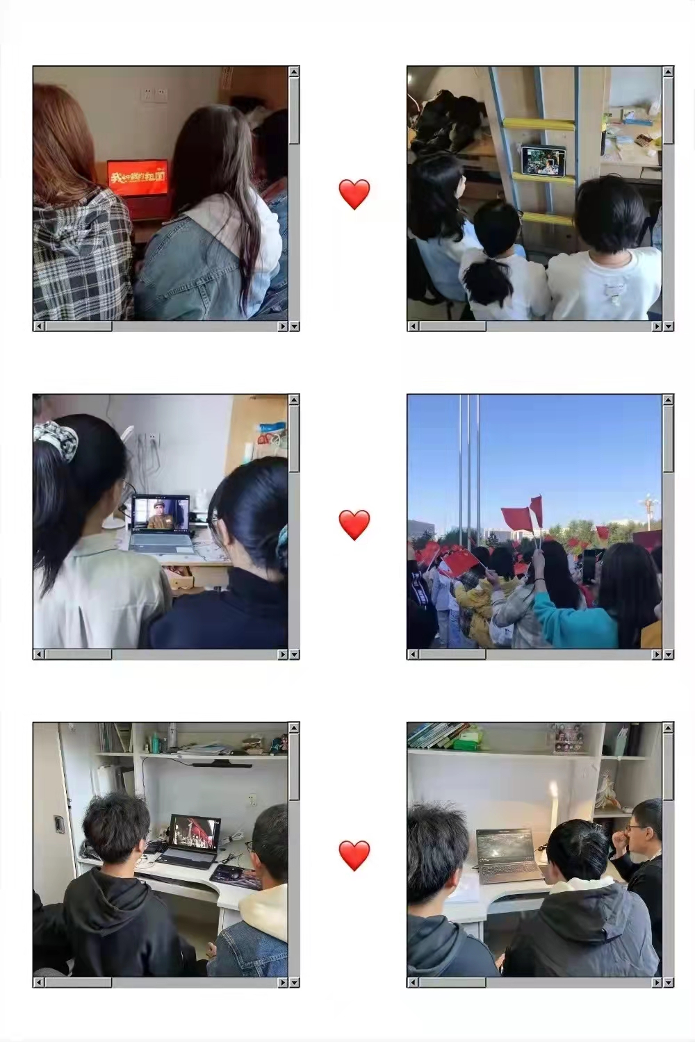 活动中,同学们或举起相机参与户外视频录制,向祖国表达最真挚的祝福,或拿起纸笔写下对祖国的深深祝愿,或于室内观看红色影片如《觉醒年代》等追寻革命先辈的足迹,追忆建国的艰苦历史。同学们举起手中的五星红旗,迎风挥舞,在十月的阳光照耀之下,陪伴祖国母亲度过第72个生辰。72年前,中华人民共和国正式成立,回首过去,我们感念于先辈们的努力、付出,更敬佩于他们那一腔报国热血以及不懈拼搏的精神。从革命时代的前赴后继,到社会主义建设时期的艰难探索,从改革开放的伟大实践到中国特色社会主义新时代的砥砺奋进,一代代的中国共产党人同中国人民共同奋进,让中国一步步走向世界舞台的中央。“何其有幸、生于华夏”,每一位同学都深刻地感受到祖国母亲的伟大,衷心地祝福我们的祖国繁荣富强。