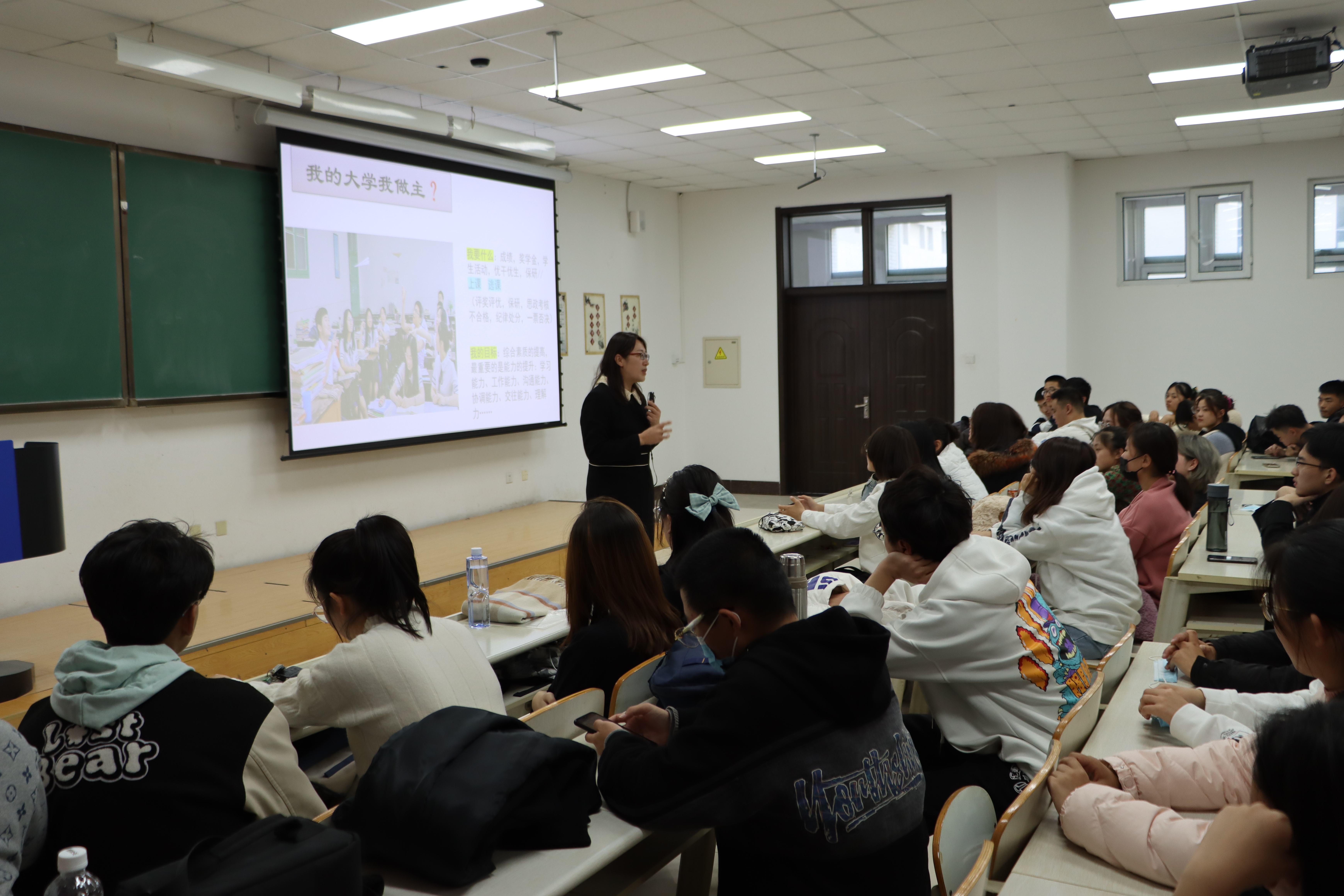 2021级大家庭成员情况开始,让同学们对学院及身边的同学有更直观的了解。随后,葛老师通过大学与高中的区别、如何处理人际关系、我的大学目标等主题入手,为大家讲解如何处理寝室、班级、朋友、恋人等之间的关系,如何自主性的进行学习,如何规划大学四年的学习、生活等进行了细致的阐述,系统性地解答了初入大学的各种疑惑以及对于各种困扰的解决方法。她希望同学们积极调整心态,顺利完成高中到大学的过渡阶段,尽快适应大学生活,做到自信自主、自尊自爱、自立自强,全面提高个人综合素质,努力成为新时代大有作为的新青年。
